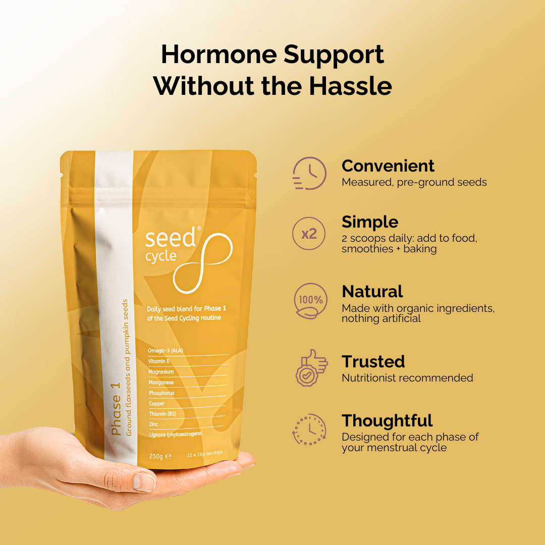 "As a Nutritional Therapist I take a science-backed approach to my work and often recommend seed cycling to my clients because of the evidence showing how they can help to balance hormones, regulate ovulation and ease symptoms related to perimenopause and many other hormonal issues."