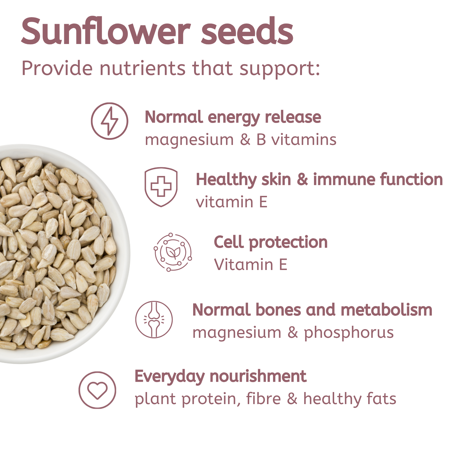 Our organic sunflower seeds are small but nutrient-dense, naturally rich in vitamin E, magnesium, fibre, and plant-based protein. With a creamy texture and mild nutty flavour, they’re an easy way to add natural nourishment, healthy fats, and everyday wellness support to your meals and snacks.