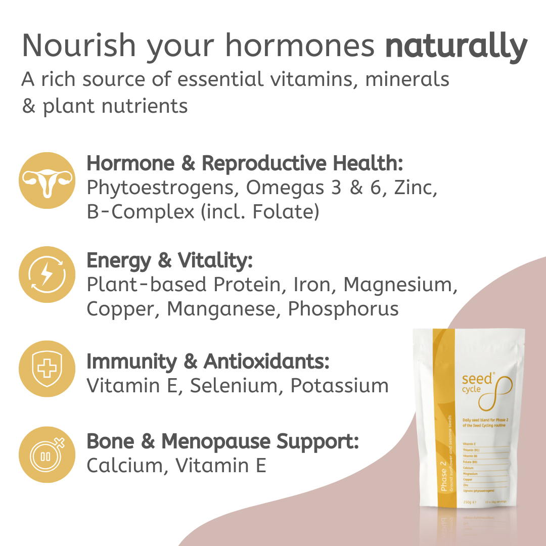 Seed cycling is a natural, food-based approach to hormone balance. By eating specific seeds at different times in your menstrual cycle, you can provide your body with nutrients that may help support oestrogen and progesterone.